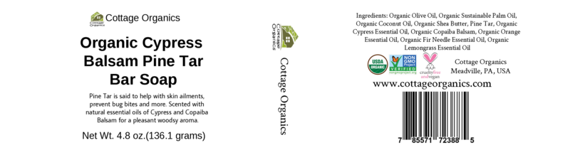 Ingredients: Organic Olive Oil, Organic Sustainable Palm Oil, Organic Coconut Oil, Organic Shea Butter, Pine Tar, Organic Cypress Essential Oil, Organic Copaiba Balsam, Organic Orange Essential Oil, Organic Fir Needle Essential Oil, Organic Lemongrass Essential Oil