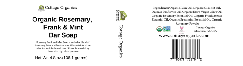 Awaken your senses with the earthy, herbal aroma of rosemary, the grounding richness of frankincense, and the cool, refreshing lift of mint. Handcrafted with nourishing organic oils, this bar soap gently cleanses while supporting healthy, balanced skin. Rosemary’s natural clarity pairs beautifully with frankincense’s soothing depth, while mint provides a crisp, cooling finish. Perfect for an energizing morning shower or a refreshing evening wash, this soap leaves your skin feeling clean, revitalized, and renewed.